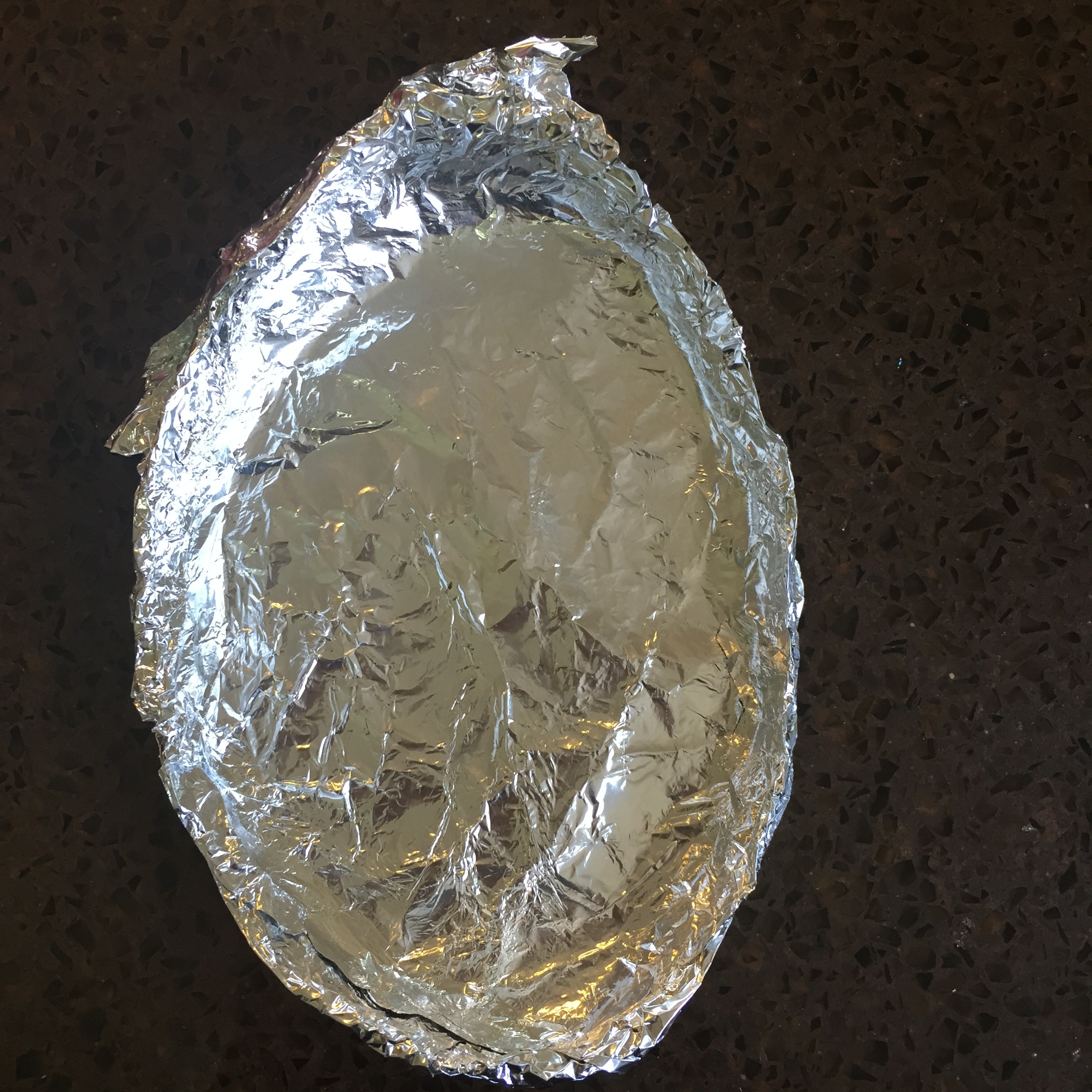 To make the egg shape mould, cut and sculpt sheets of aluminium foil to form a flat egg shape turning up the edges to form an outer, supportive ledge. The smooth chocolate mixture will sit in this.